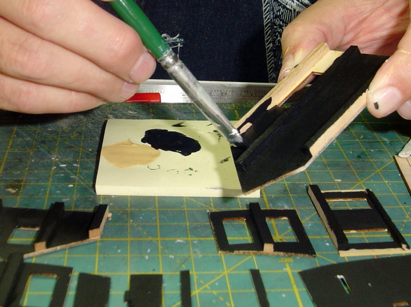 Now it's time to figure out which windows, doors, etc. go where and paint them.  The doors made up of layers of laser cut components.  The instructions make it pretty easy to locate them.
