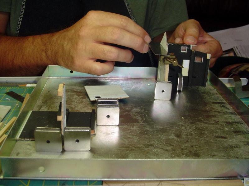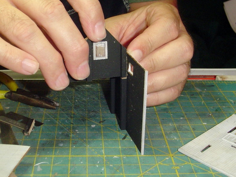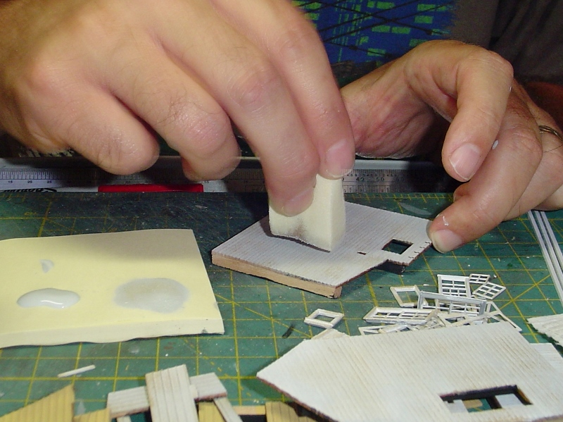 I added the doors and window frames and was ready to start gluing the walls together.  Well, here's another place where bracing needed to be removed from one wall.   :P  ???