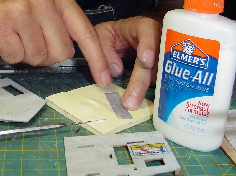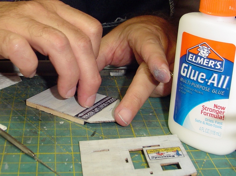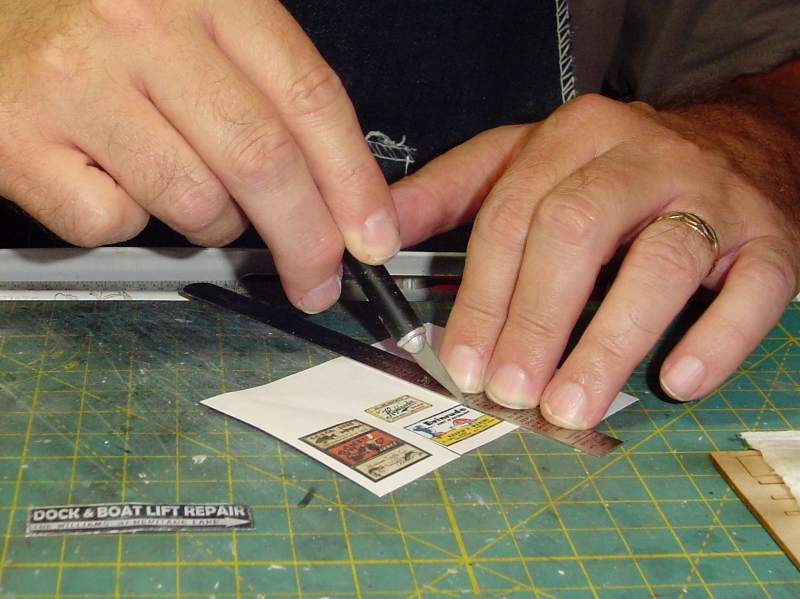 Time to add signs to the walls.  I cut them out with a nice, sharp X-Acto blade and steel ruler.  One of the really nice things about Bar Mills kits is they always supply plenty of signs (duplicates) so if you mess one up you have a back up handy.