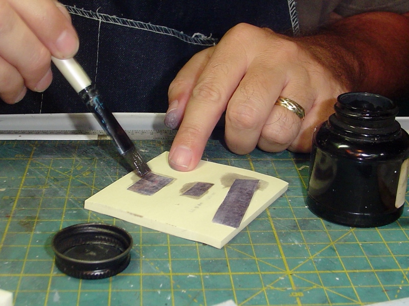 I gently sanded the back of the signs to thin the paper a bit.  Then I applied a was of A&I to the back.  It's darken the front of the signs.