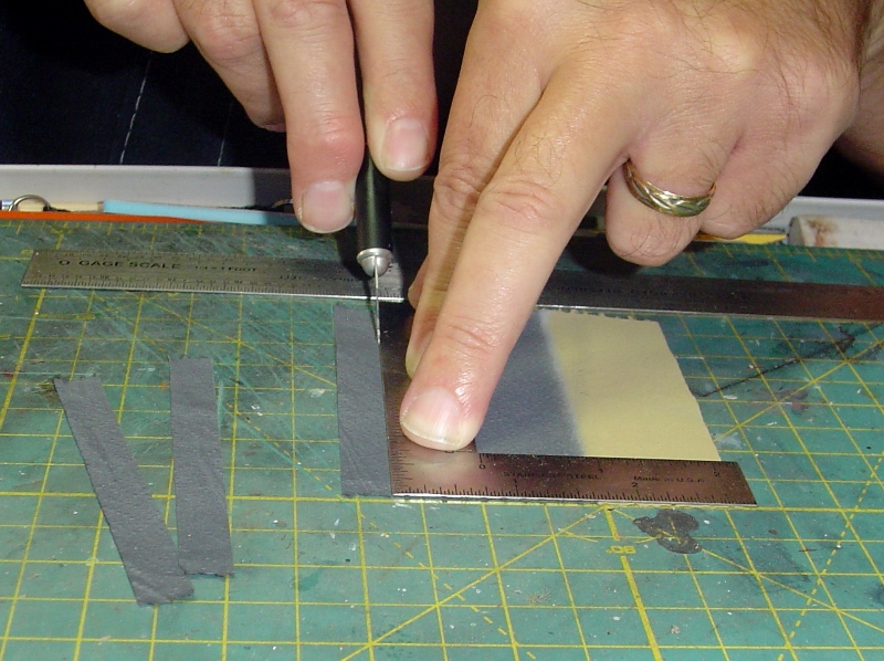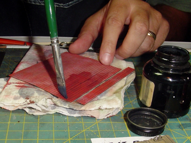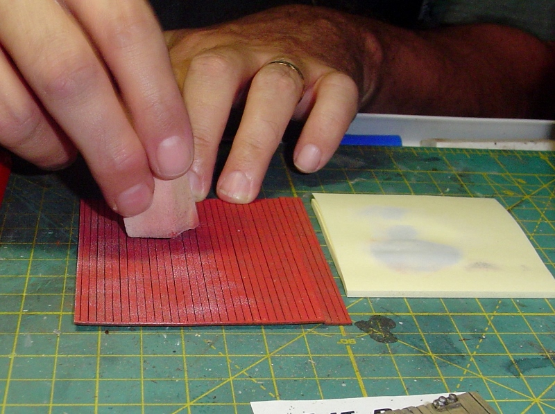 I decided to distress the boards a little more using a tool I picked up a long time ago from somewhere (probably Micro Mark).  It's a wire bristle brush.