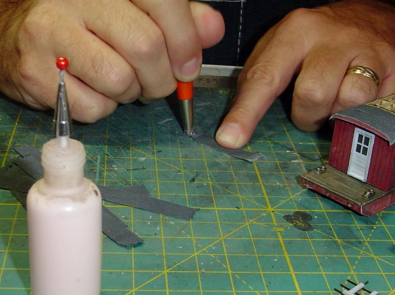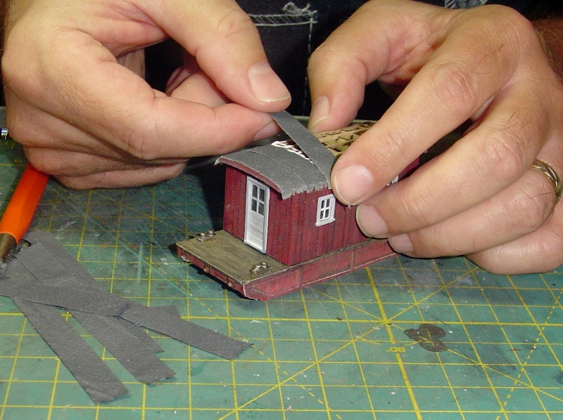 Then I glued them in place across the roof and overlapping one another slightly.