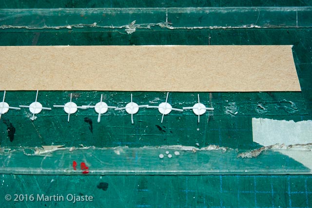 I then proceeded to punch out 64 circles from 0.010" styrene. I found the cutting board as a backing provided the best cut circles.