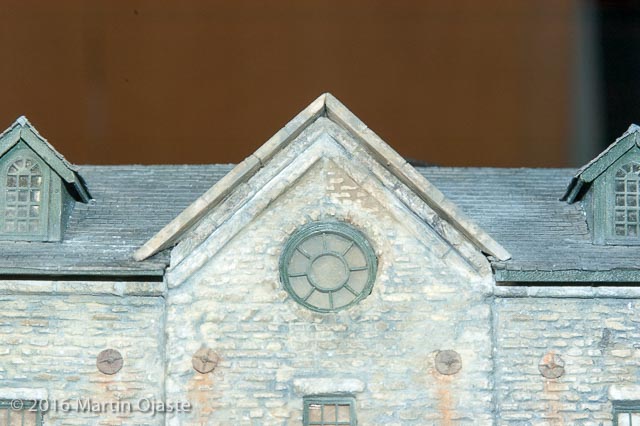 The walls all got a dusting of greyish chalks to tone down the fresh paint look on the windows, doors and dormers. When all is said and done the structure is pretty well done.