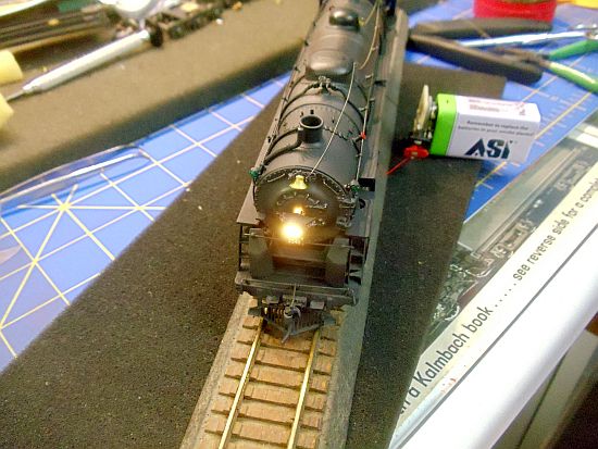 In years past, lighting a brass loco was done with a 1.5v mini lamp using a CIL (Constant Intensity Light) unit. One could also use a 12v GOW (grain of wheat) bulb and wire it directly to the motor leads. However, as the speed increased, the intensity of the bulb also increased. AH, the good old days.