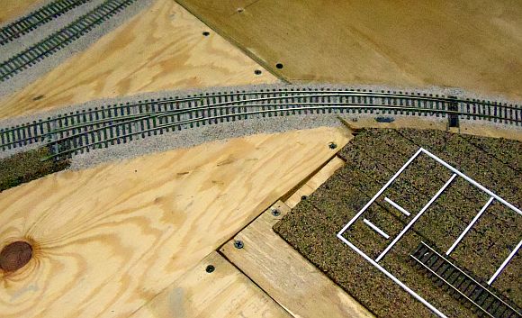 You can also see that I have a grade difference of 1/4" (the thickness of cork roadbed) in the middle.