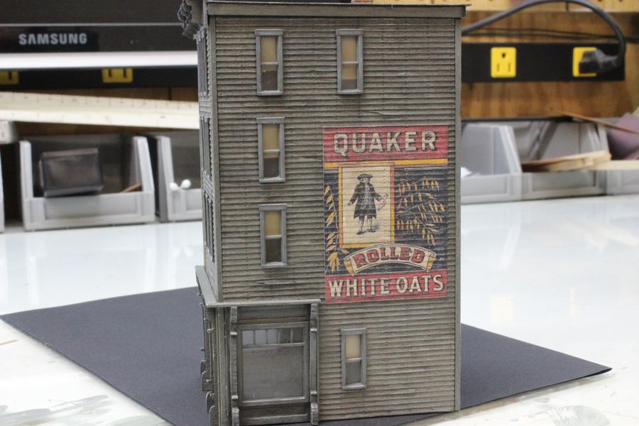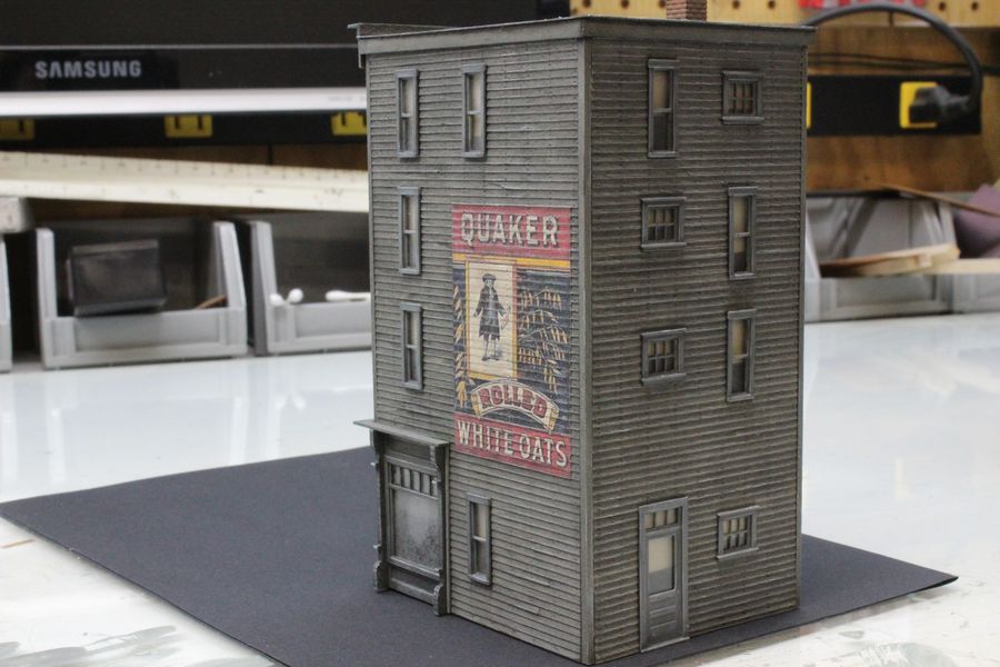 I love the color that you chose, the signs came out great. When I look at buildings like this up here in the Northeast, I see the window trim painted the same color as the building. Someone told me that this was common as it was cheaper to do. Post some photos when you "plant" this structure!