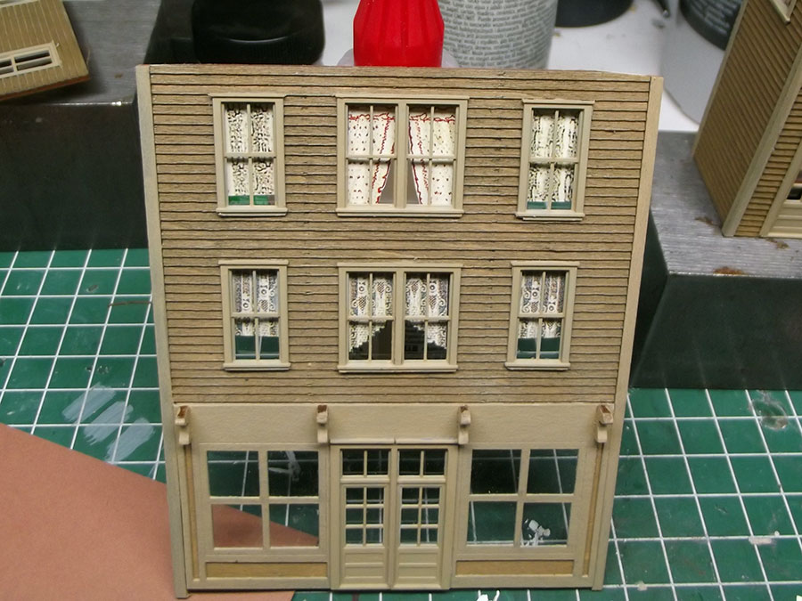 Jan, the curtains are a great touch!  I have used real fabric before for a dress shop and millinery, ho scale bolts of cloth material and stacking them on a back loading dock.  My wife was not overly thrilled about me sneaking into her sewing room and cutting swatches of cloth from her supply but it turned out pretty cool and gave it a realism that many people who visit comment on.  She is not going to like it when I try your curtain and drapery effect....LOL  Beautiful model all the way around, I will be following this thread.