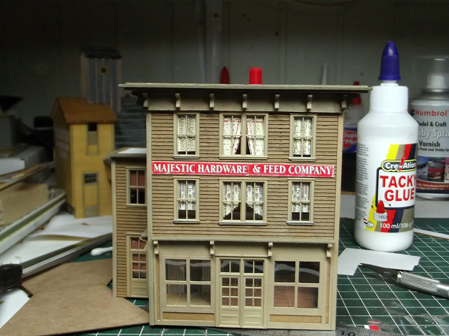 Signs added, and yes these are signs from the Majestic kit , I will be putting the 2 buildings on a dio such that this is the store of the business and the Bar Mills kit will be the work place and storage place, more on that later on in the show.