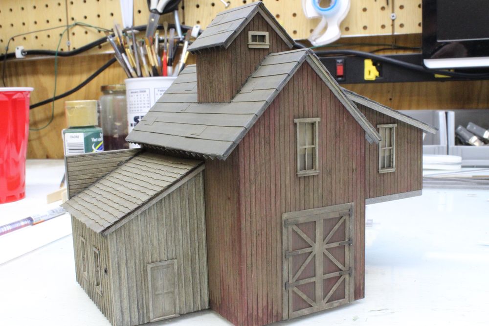 I added the rest of the roofing and the cupola over the weekend. I chose not to use a combination of tarpaper and corrugated metal instead I chose to use all tarpaper for the main structure. I also changed the tarpaper color from red to black. I like red tarpaper but I felt it would look bad against my barn red walls.