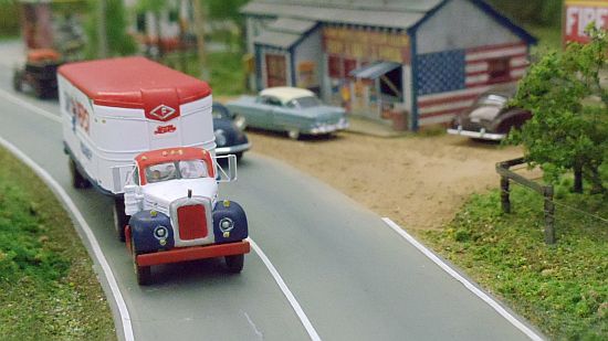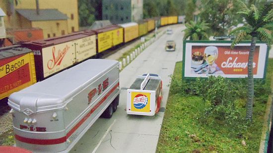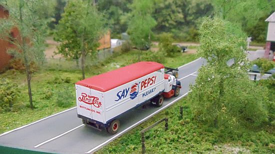 The word is out the the President of the A&S RR is very low on Pepsi. Here we see a Pepsi truck approaching the rural gas and grocery store. I'm sure a large load of Diet Pepsi will be left here.