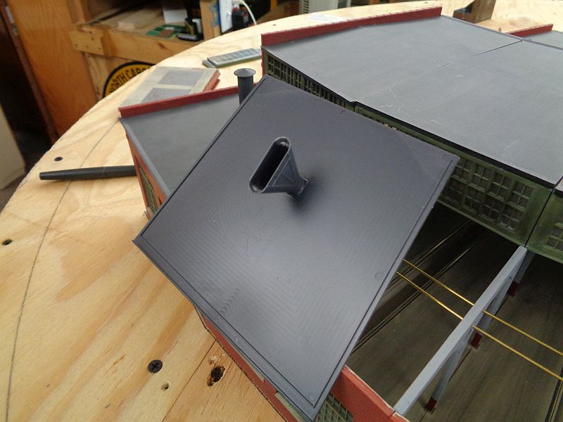 Since the smoke funnels interfere with the buss wires, I removed them. I'd rather have the LED lighting than the smoke funnels. But then I can always move them.