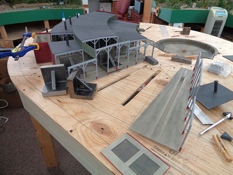 Work on the roundhouse restoration continued yesterday. I got two more stalls fixed and in place by noon.
