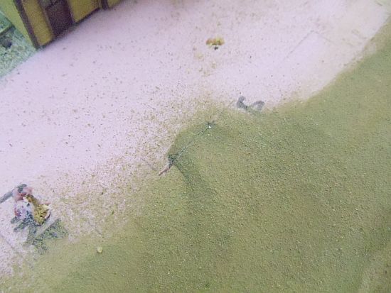 The white glue leveled out a little and when the sand was added it leveled even more. You can see the structure doesn't fit flush/level now.