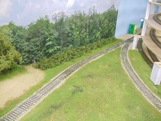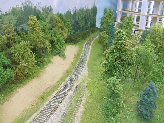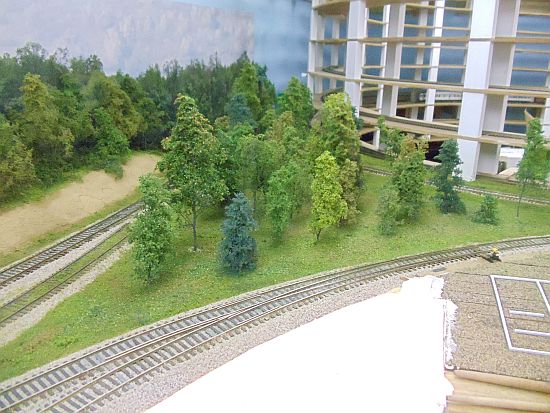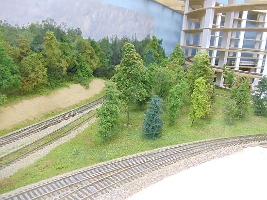 I got a few trees planted in the reverse loop area. I'll add some underbrush in and around the trees. Right now they look a little to sterile for me.