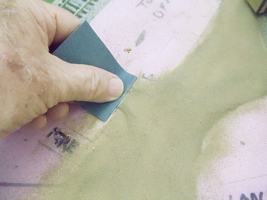 To smooth the area, I use #220 wet or dry sand paper to sand the sand. ??? ???
