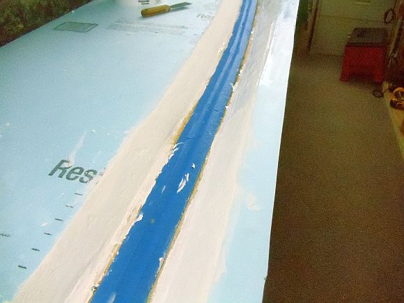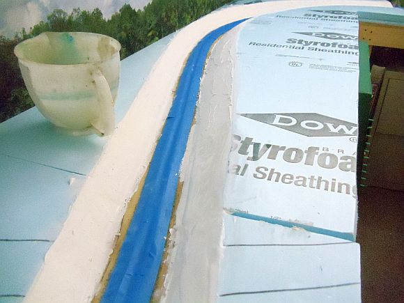 I've been adding spackle to the sides of the blue foam. So far I've used 3/4 of a gallon. For those living on Longwood, that's 3 quarts.