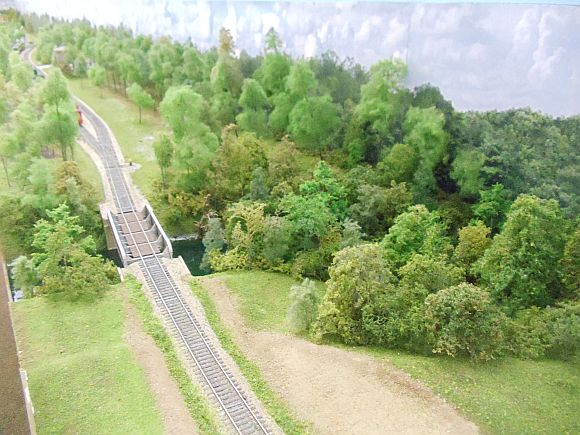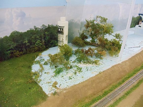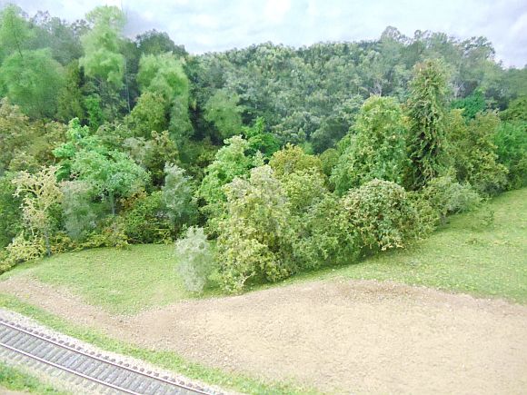 Today I used almost all my old super trees from the old layout to cover the river bank on the south side.