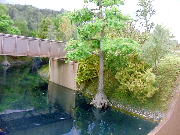 Absolutely beautiful work. Really give the impression of the South. Might suggest a little more tree liter along the river bank in the background. Another thought might include a little scum on the water. I used a very diluted acrylic paint on a brush to get this effect. I think that everyone visiting your layout next month will enjoy seeing your beautiful layout. Keep up the great work.