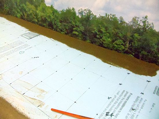After the white glue is spread out, the first layer of scenery was added and spread.