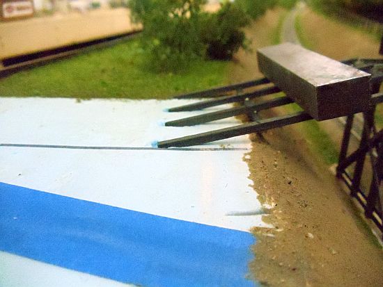 Once the glue set, I marked on the blue foam where the deck support beams ended. I then removed some of the blue foam, just enough to let the approach section of the bridge sit on the top of the foam.