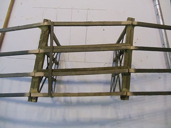 I used a metal square to mark where the scale 2X8 decking boards are placed. To make it look prototypical, the boards are set perpendicular to the the support beams.
