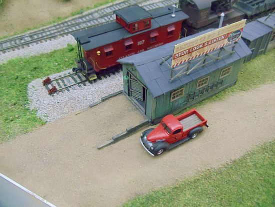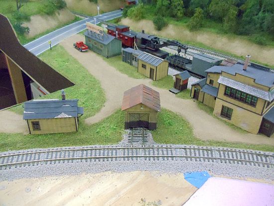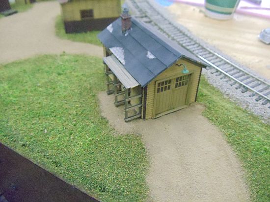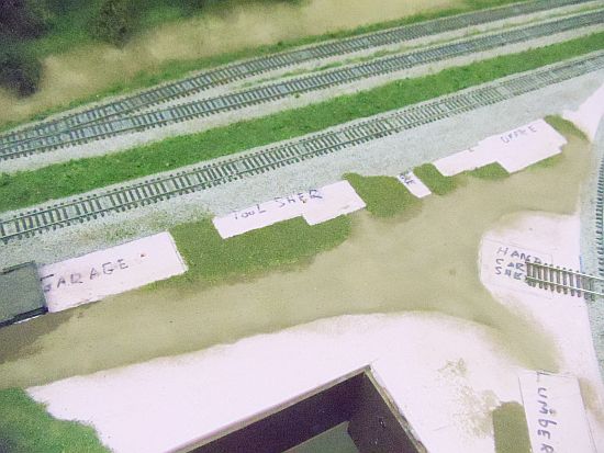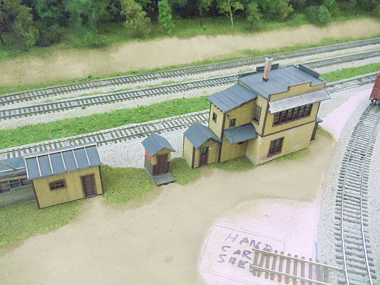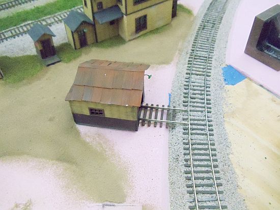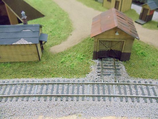 I'll fast forward here to say the hand car shed track was ballasted, the rest of the grass scenery and dirt was added. I have many many additional details to be added to this area but the basic scene is complete.