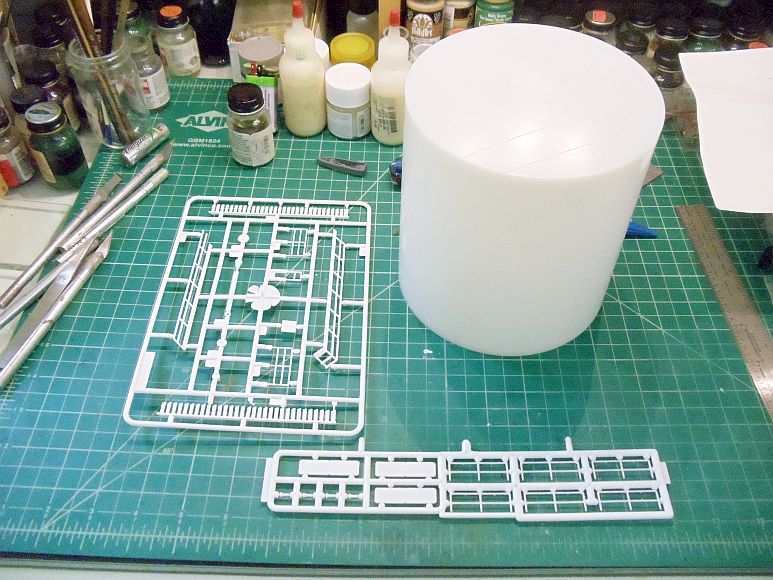 I had the one piece of sprue left and I cut the two ends off and made them into pipes at the bottom of the tank.