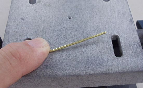 When the post is laying flat, the curved/top portion of the fence is not level with the drill press table. This made it difficult to get a good drill spot on the brass. The drill bit wanted to "float" and grab where it wanted.