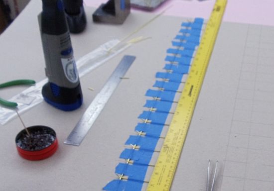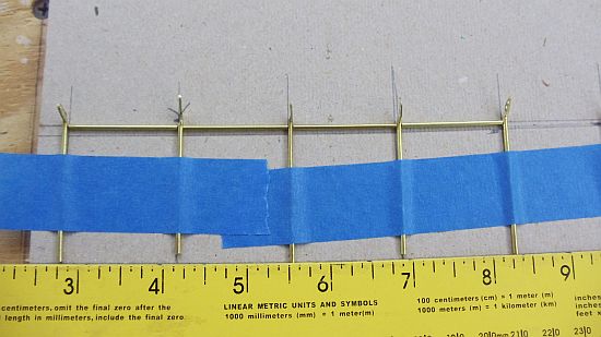 The first section I built was the section behind the large tank. I applied a little rosin to the brass posts and bars and soldered them in place.