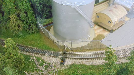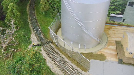 I continued the installation of the fence around the large tank. I'll add more scenery around the base of the fence tomorrow. The fence is loose as it is now and will be glued and let dry over night.