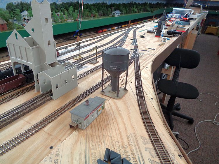In the above photo, the track to the left of the water tank is to far to the left. I need it to be more in line and parallel to the inbound service tracks.