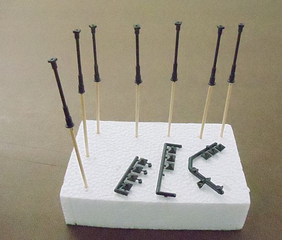 Today I assembled two lamp posts and installed them on the mini diorama.