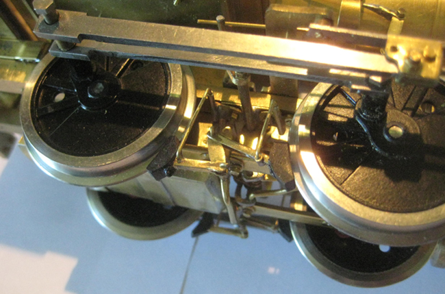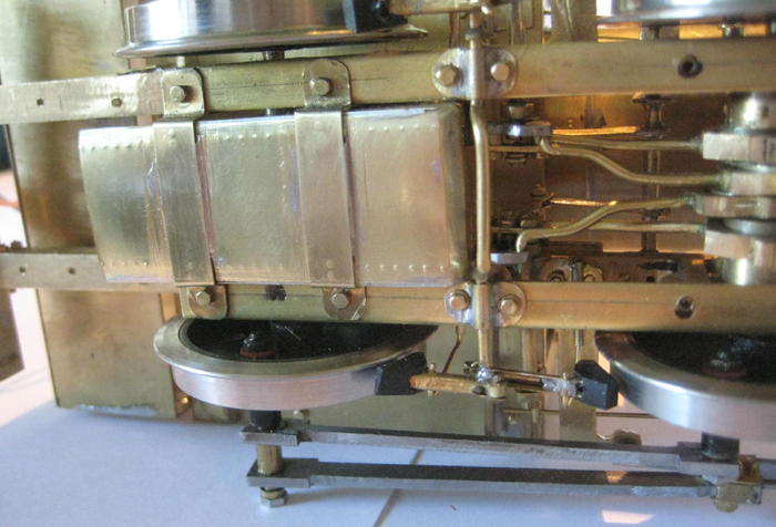 Below are two shots of the fire box.  It is made of .010" brass sheet stock and cut and fitted.  I had a minor collision with the brake rigging so there was some quick peddling backwards but it ended up fitting.