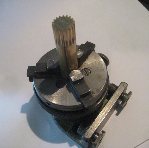 So here is the lash up of the pinion gear.  I'm cutting it as if it was a splined shaft.  Then cut it off later.