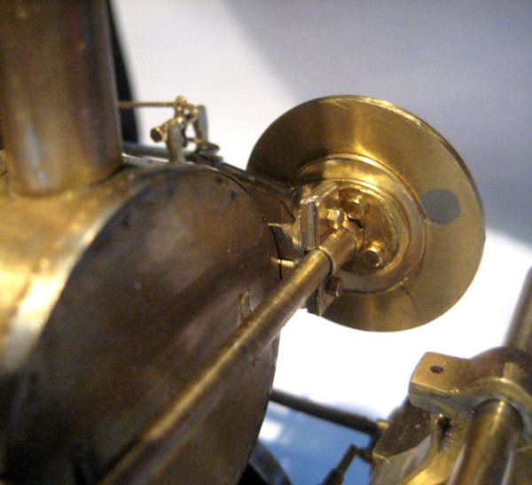 The fly wheel is a made from a throttle plate from an SU carbureter from a 1959 Volvo that I had years ago.  I save anything that is brass.  The soldered closed screw holes won't show once painted.