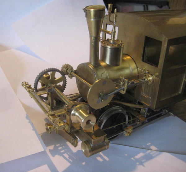 So here is the gypsy engine cylinder installed on the side of the fire box inside the cab and the cross head outside.  The connecting rod is three pieces of mild steel and the wrist pin is a trapped clevis in between the cross head rails. There was no space for any screws or like that.