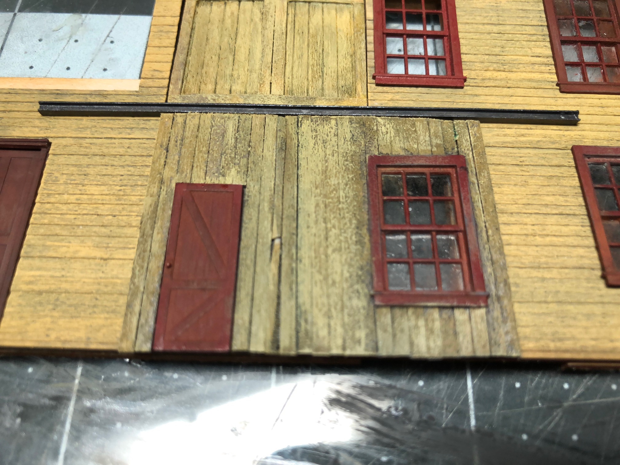 Here's a closeup of the large doors - still need to add the rollers and hardware and attach the rails to the front wall of the building. I think the red door may be a little too much - I need to tone it down or paint it more like weathered wood.