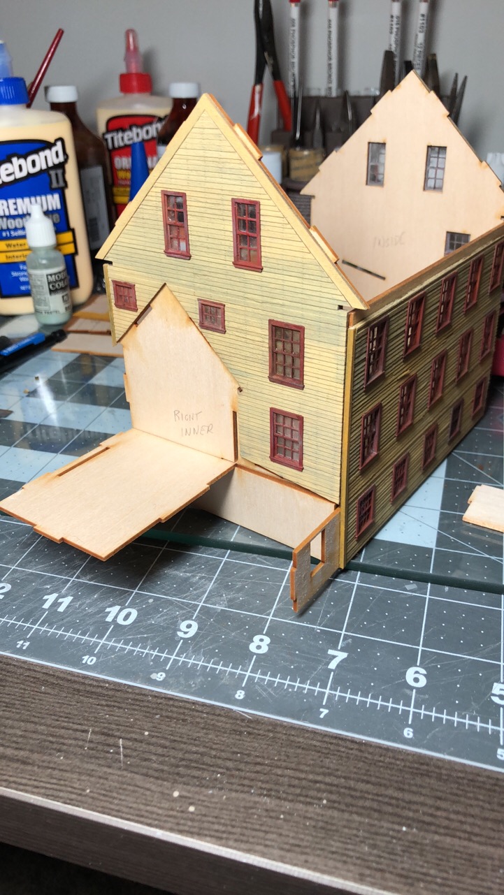 And I decided to get back into building some models - which lead me straight to the storage tub of half-finished (started?) models I'd had in the apartment. At the very top of that tub was the smaller box containing the parts of Ben's mill.