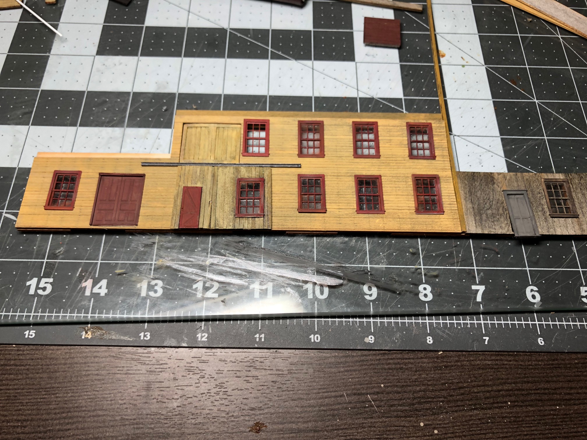 This weekend I finally got started on the doors for the front ("street") side of the mill building: