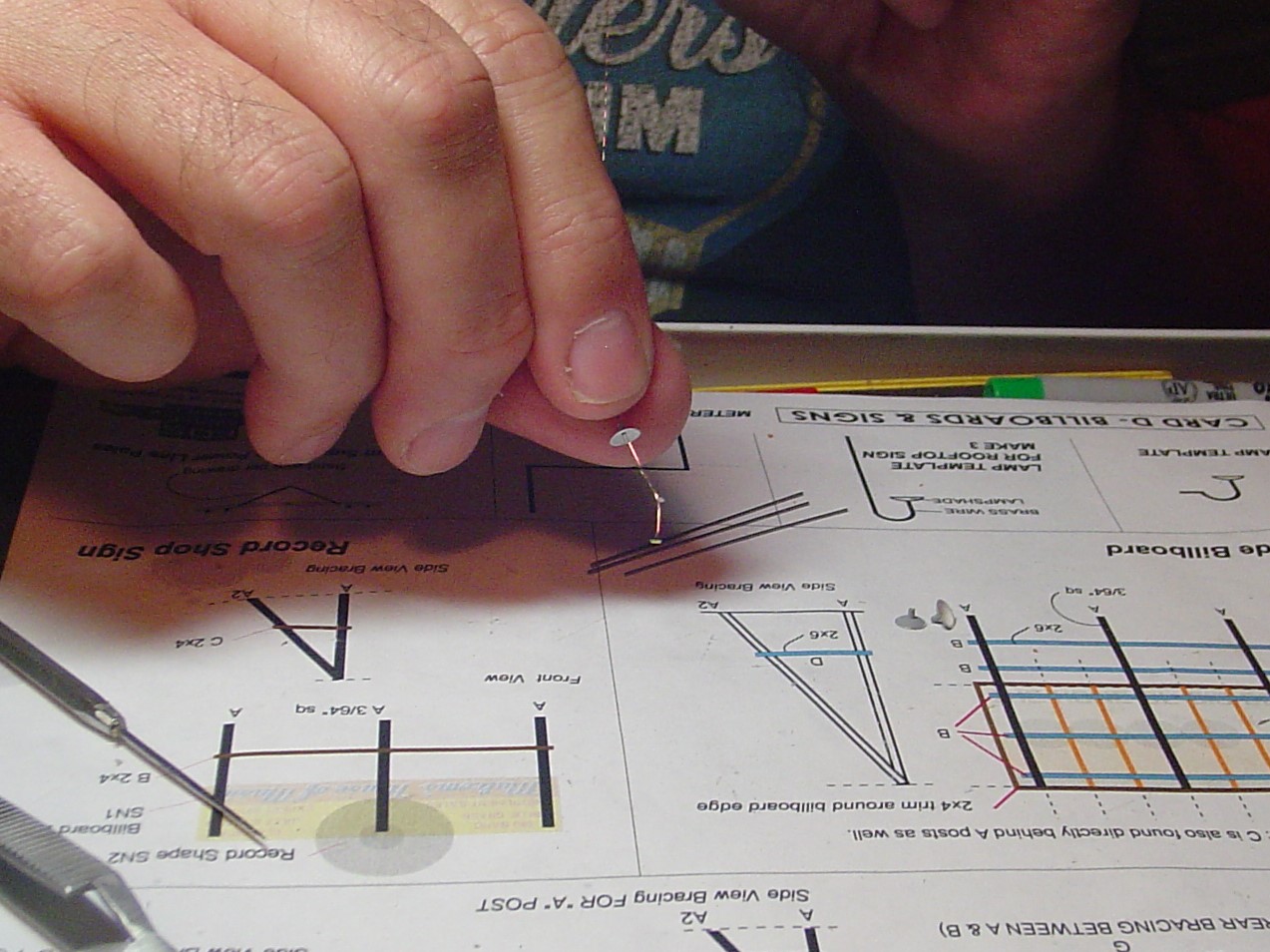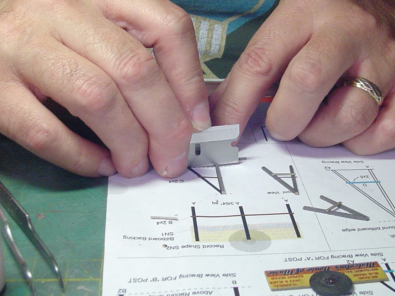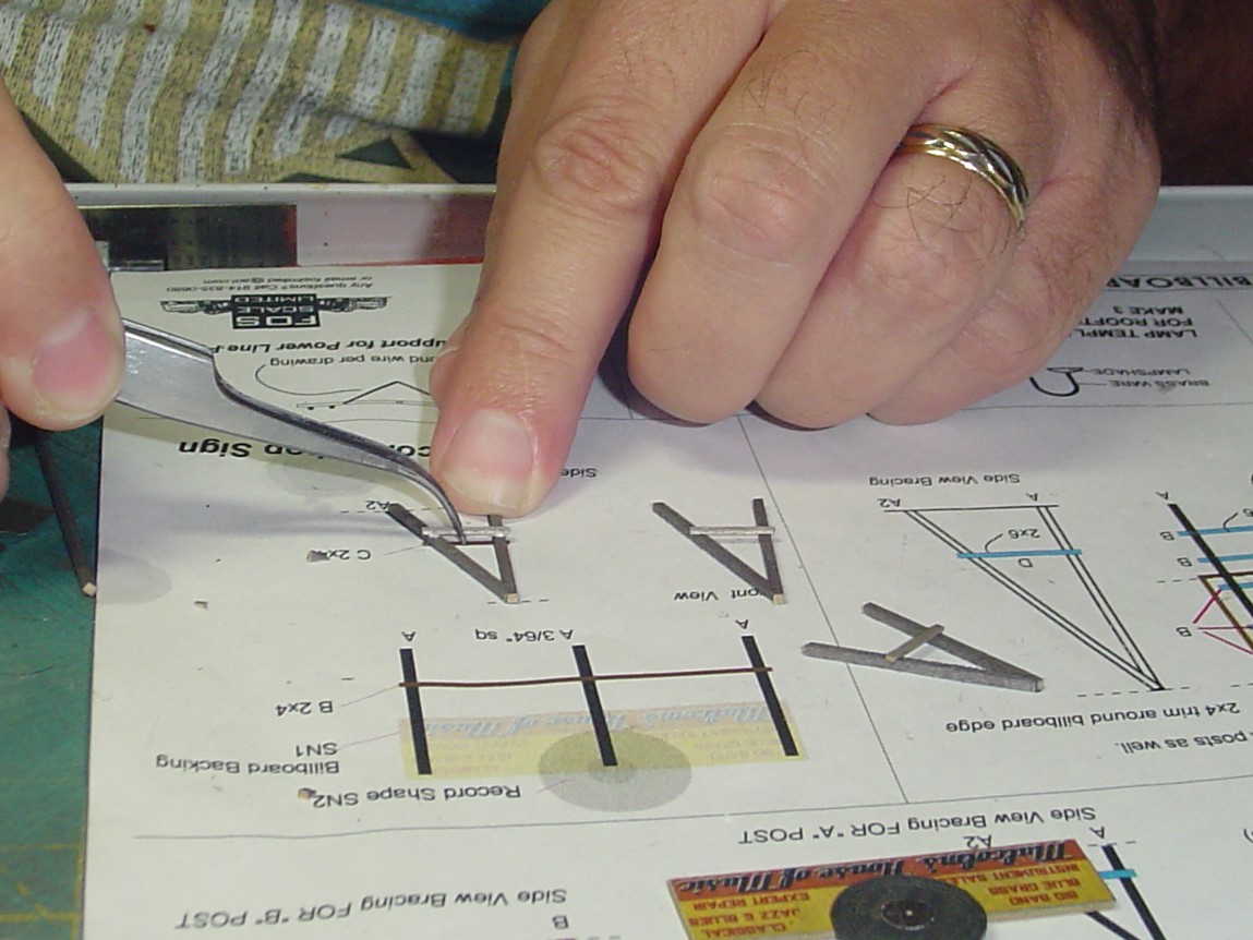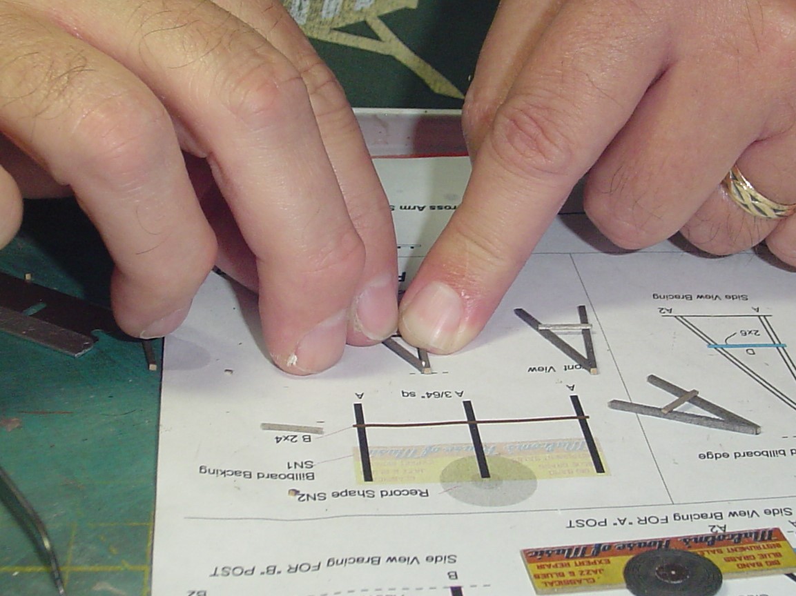 The sign I'm building is the rooftop sign that goes over the front roof of the record store.  I used the template as a guide to cut the pieces that make up the supports to the correct length.