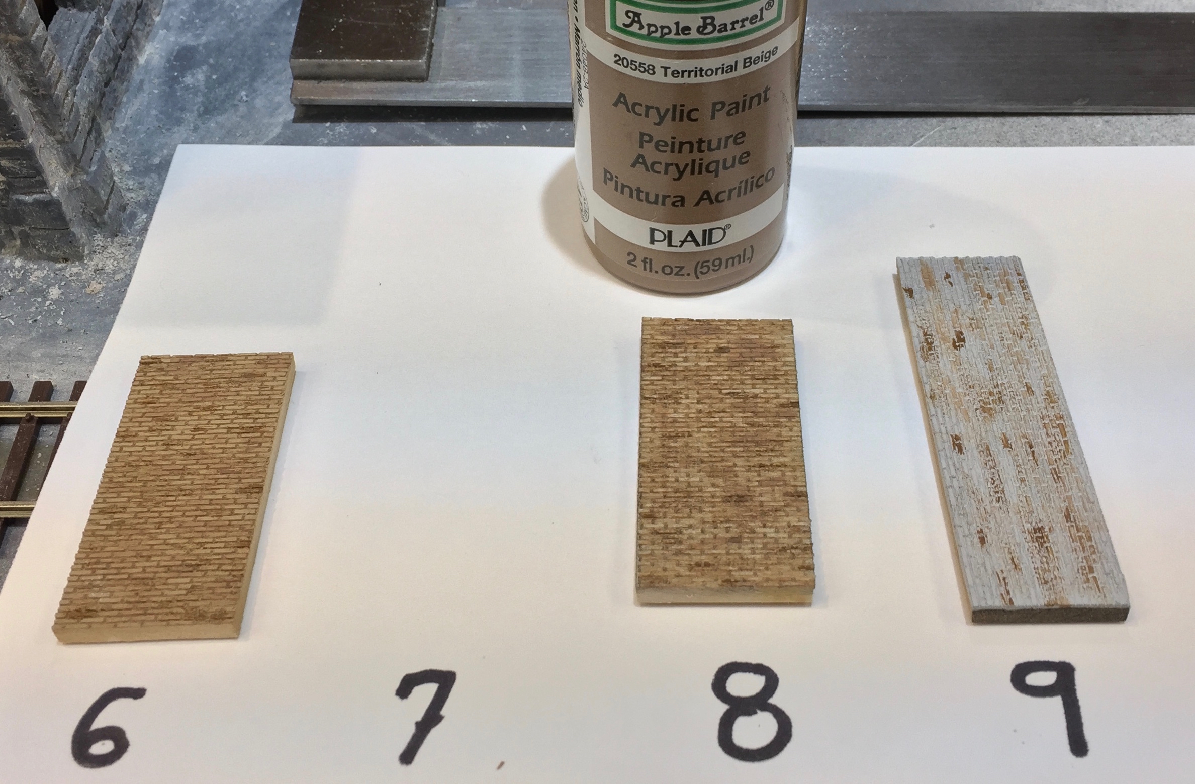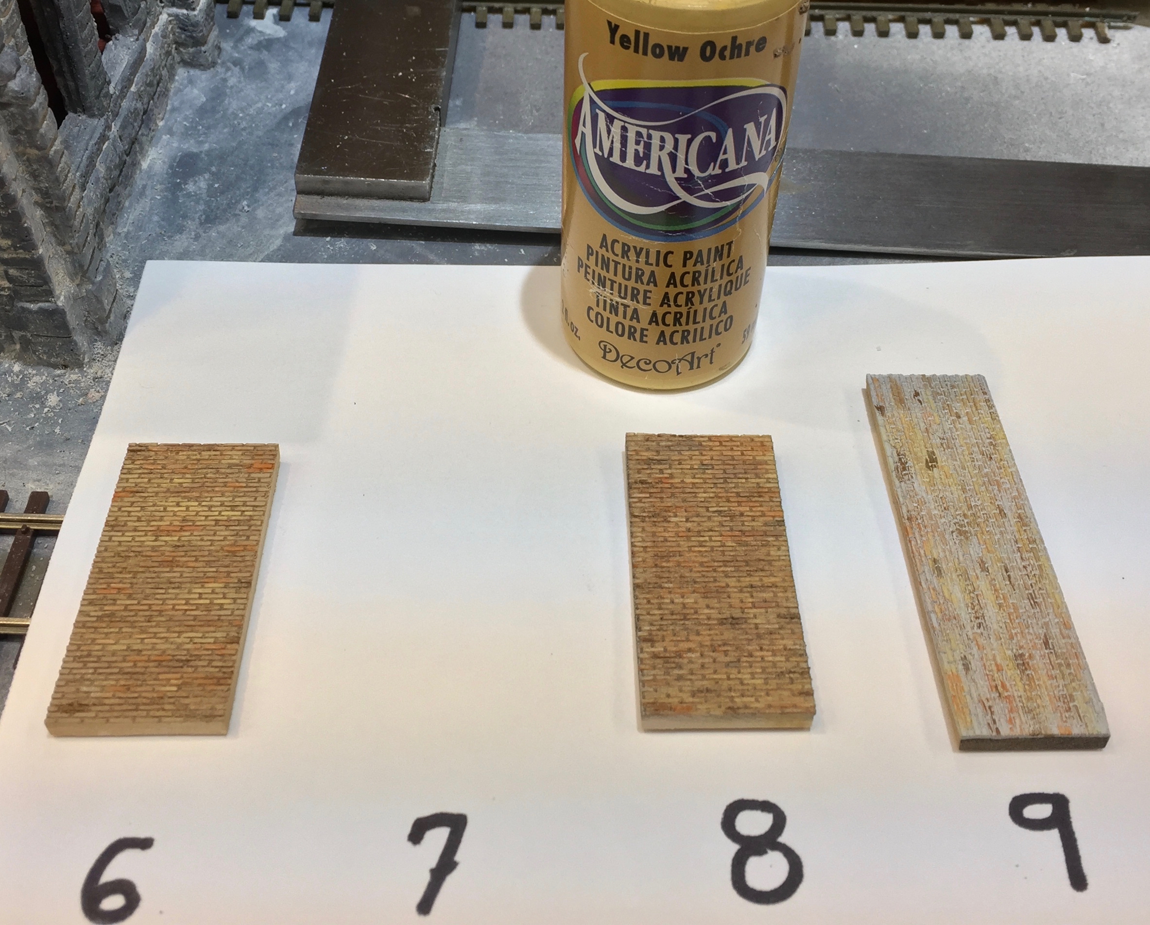 Here is a picture of the final sample board. I plan on using the number 8 technique on a future build with the Monster Model Works bricks.  For this build I will be using the technique represent by sample 7.