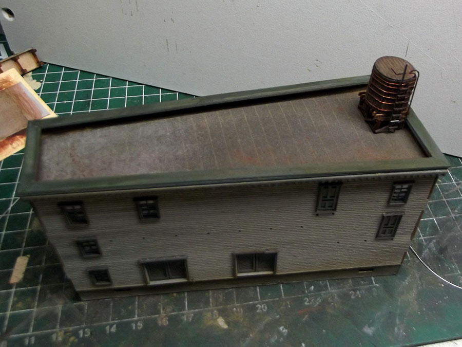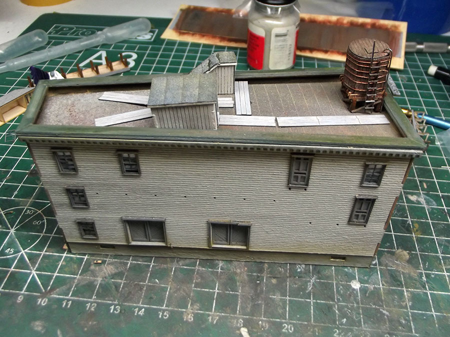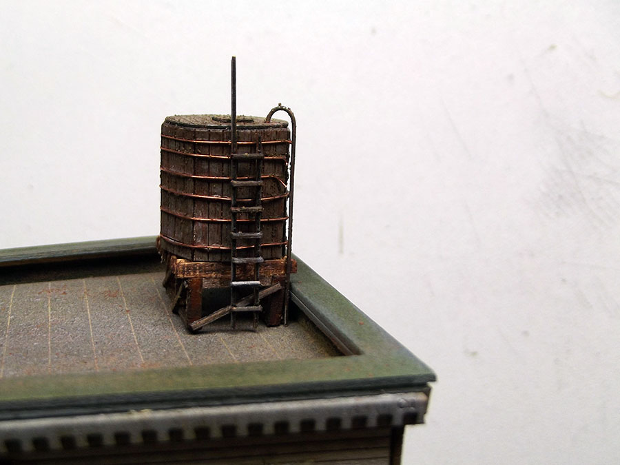 After some painting and weathering I installed the watertank on the roof.
