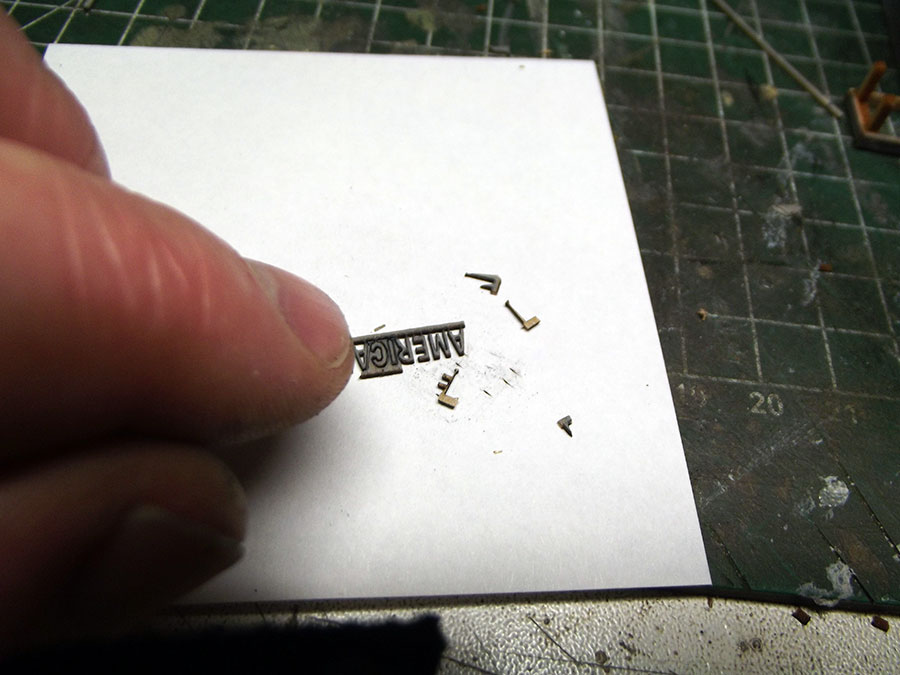 Okay then , N-scale is small and fragile so I took my time cutting loose the lettering of the signs. Very delicately cutting away surrounding pieces till the letters were free. Lasercutting at it's finest , they look excellent.