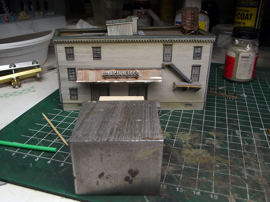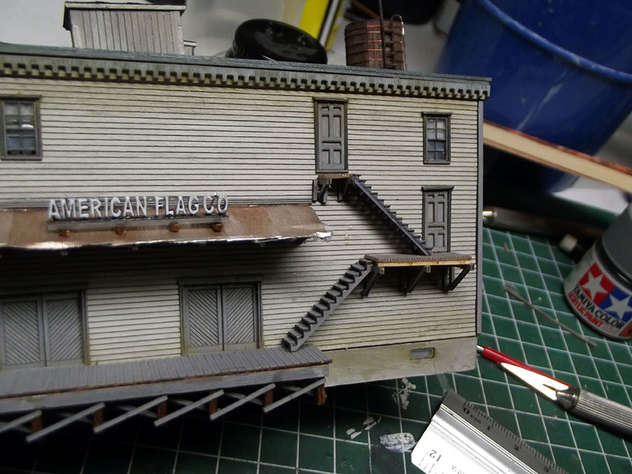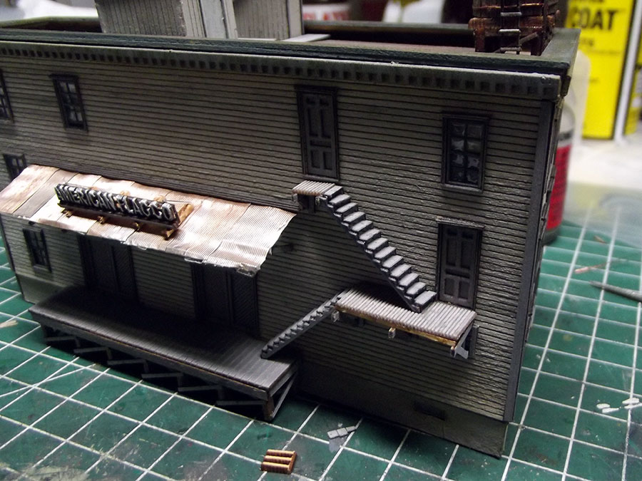 Roof installed and sign placed on loading dock. More weathering later.
