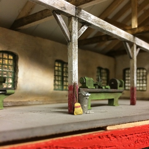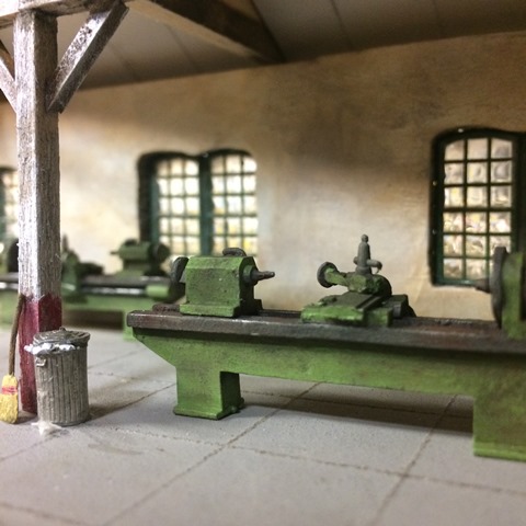 I spent some of my vacation time painting and weathering the machine shop.