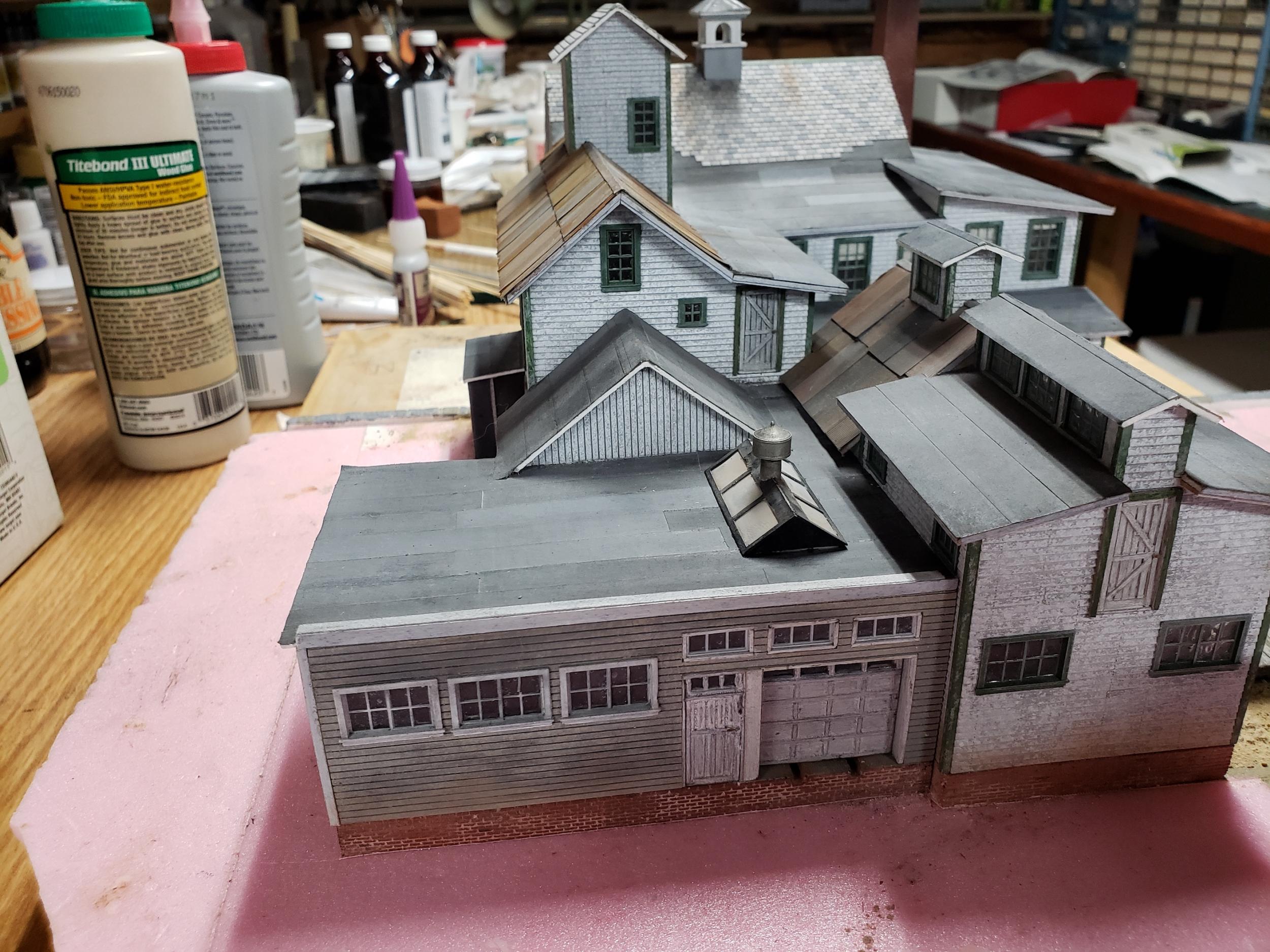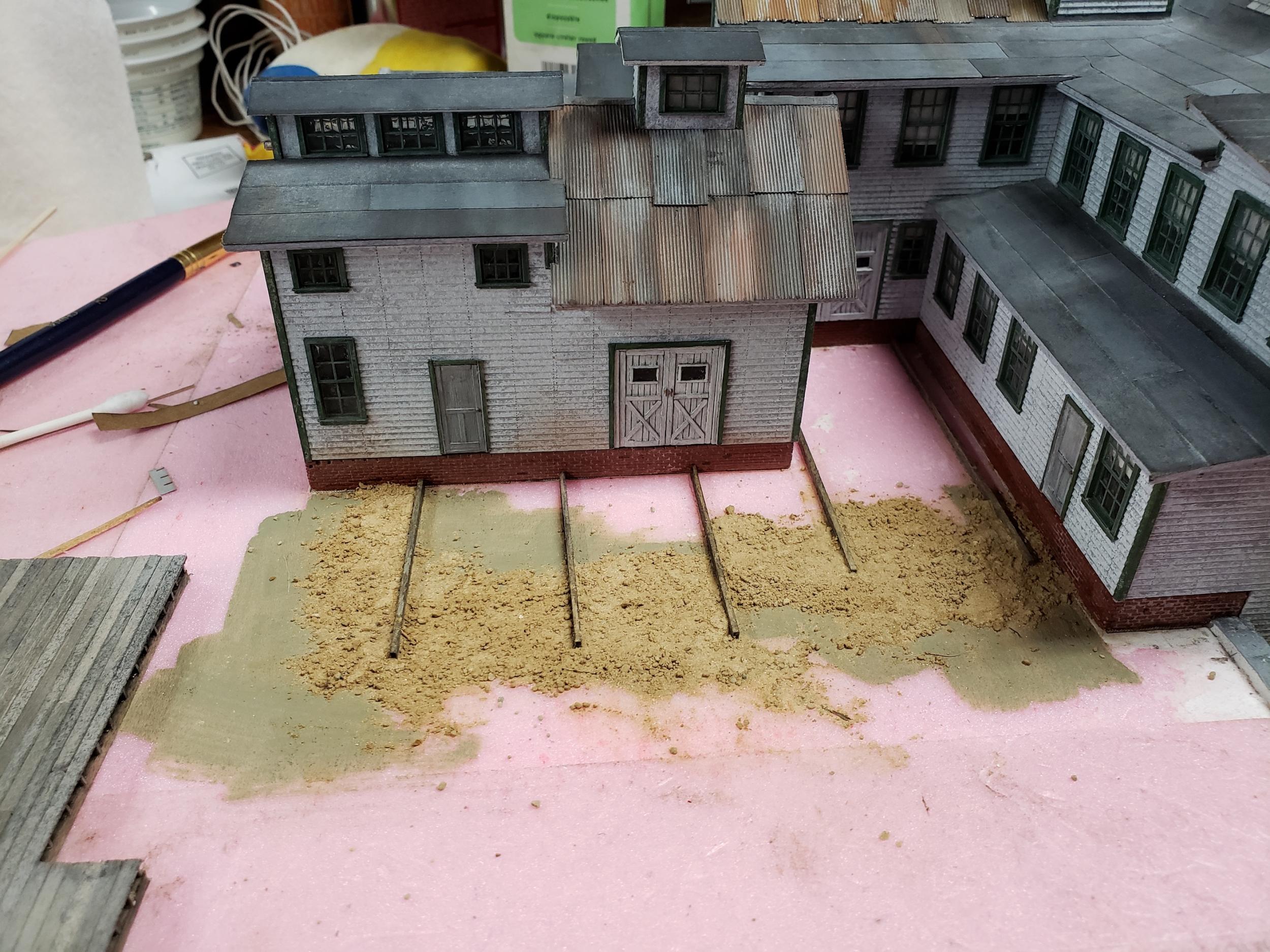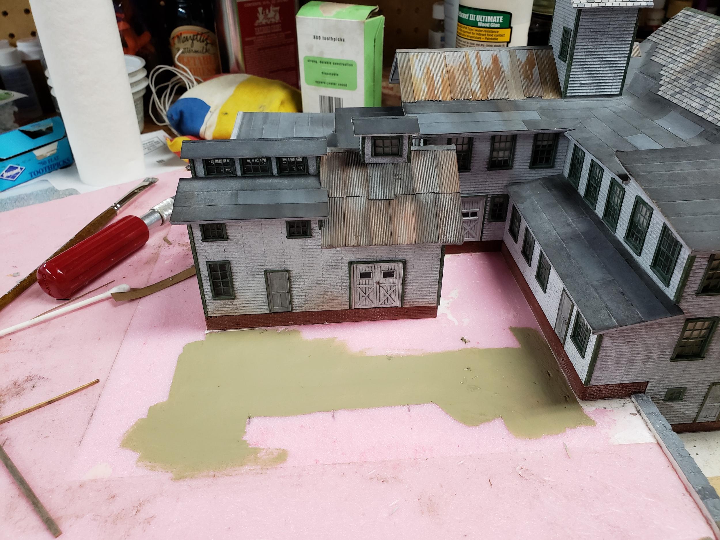 So, at this point, I'm pretty close. I still have a few pipe vents to put in as well as poles and transformers to bring power into the building. But, at that point, it will be ready for scenery. If any of you are following my "Illinois Central Monee Rebuild" thread, you know that this diorama is located at the north end of that town. Because I am about to make some dramatic changes to the town including some of its land forms, I am thinking that I will not finish the scenery on this diorama until the topography of north Monee is figured out. I want to make sure I have the maximum flexibility in planning the town and not restrict my options because I prematurely chose a road location on the dio that doesn't match up with where it goes.