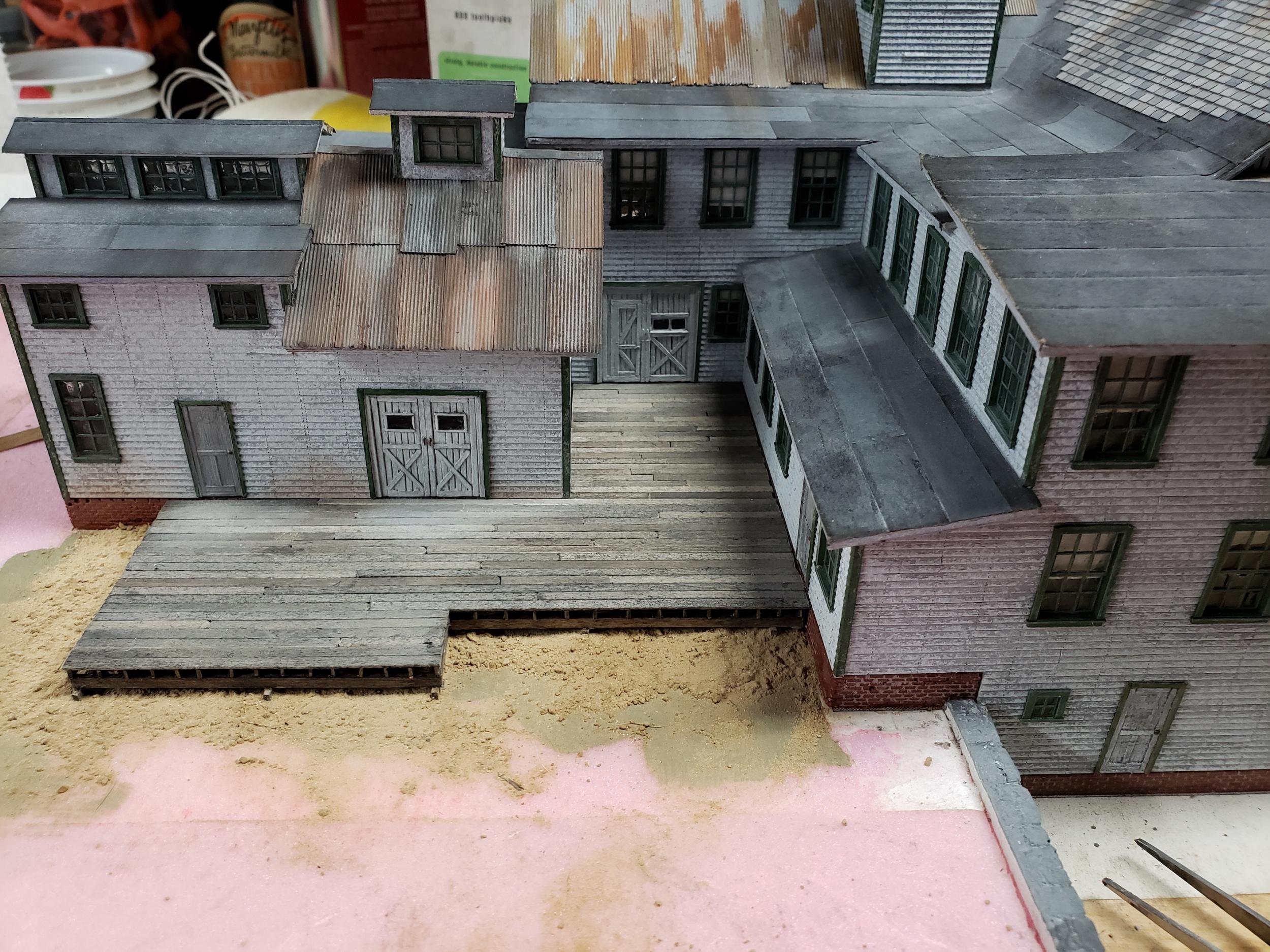 I tried to clean up some flaws on the small roof over that concrete block casting next to the ramp but what I did looks horrible. I'll probably repaint the entire piece and re-weather it.