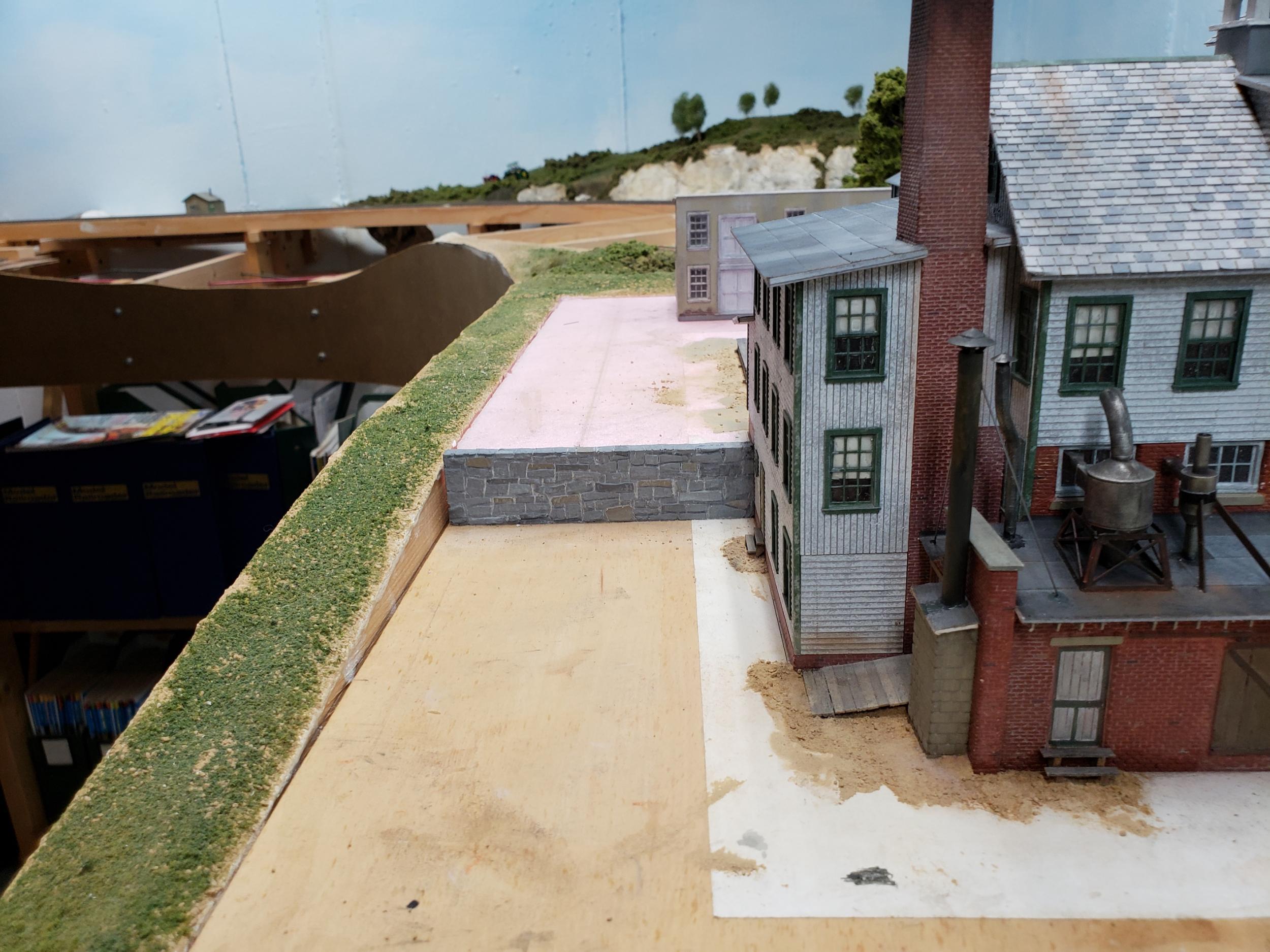 Again, a downward sloping hill will need to be brought onto the diorama somehow.  Over the next couple of weeks, I will give some thought about how that will need to look in its final form. Where are the parking areas, paths, roads, etc. I want to make sure I have a plan to make sure it mates with the surroundings believably.