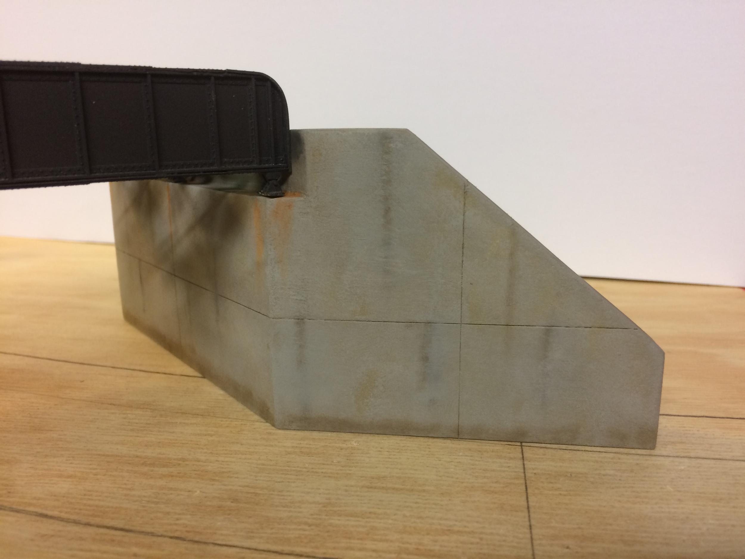 For this abutment, I sprayed the whole piece with Rustoleum Camo Khaki, then sponged on some acrylic light grey, followed by applications of Bragdon weathering powders to represent rust and dirt.